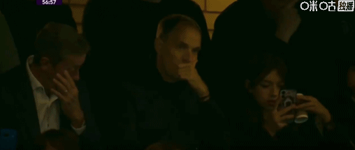 第57分钟,镜头给到看台,英格兰队主帅图赫尔现场观战